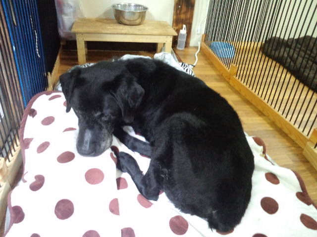 生涯預かりラブラドールのブラッキー爺さん、満腹になって休んでます。