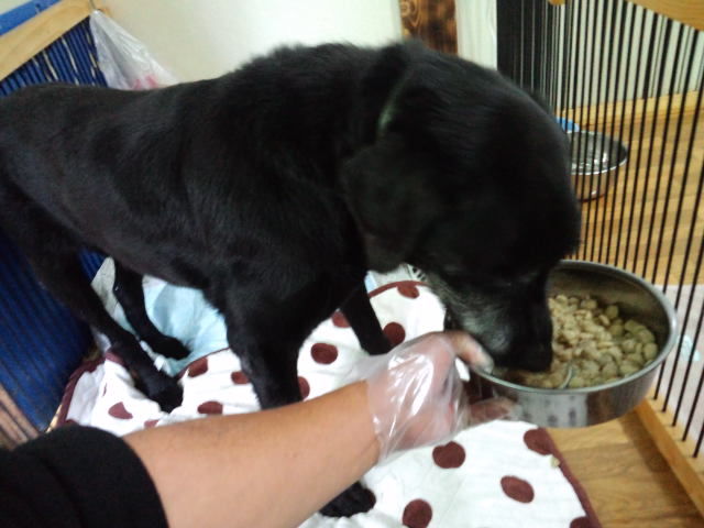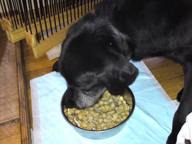 生涯預かりラブラドールのブラッキー爺さん、300ccを完食しました。まだ食べたそうですが、実はブラッキー君は夕べから後ろ足がいよいよ立たなくなってしまいました。いっぺんに量をあげると胃腸に負担が来るので、これからは回数を増やす事にします。食欲が少し落ちたかな?って思ってましたが、飼い主さん、これだけ食欲があればまだまだブラッキー君は長生きしそうです。