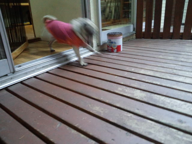 店内からデッキまで駆け回ってます。元気いっぱいですね
