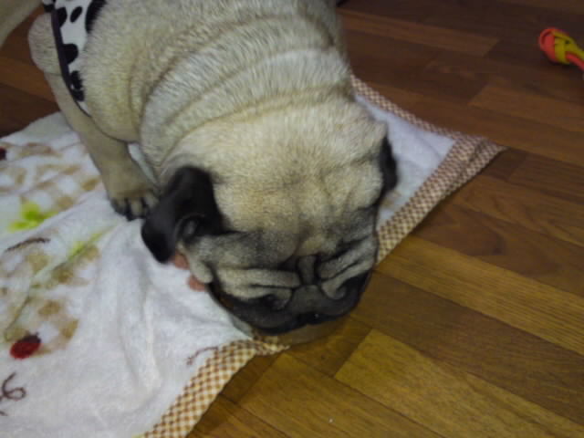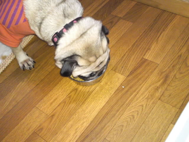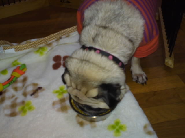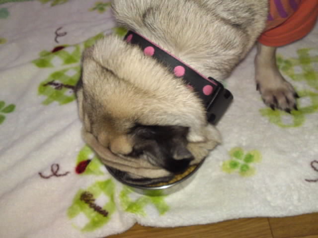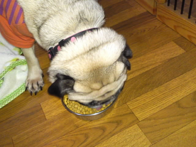 パグのこまめちゃん、ゆっくりですが完食しました。