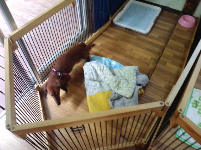 前はサークルの中でピョンピョン跳ねてましたが、最近は飼い主さんが居なくなるとすぐに落ち着く様になりました。諦めが早くなったかな?
