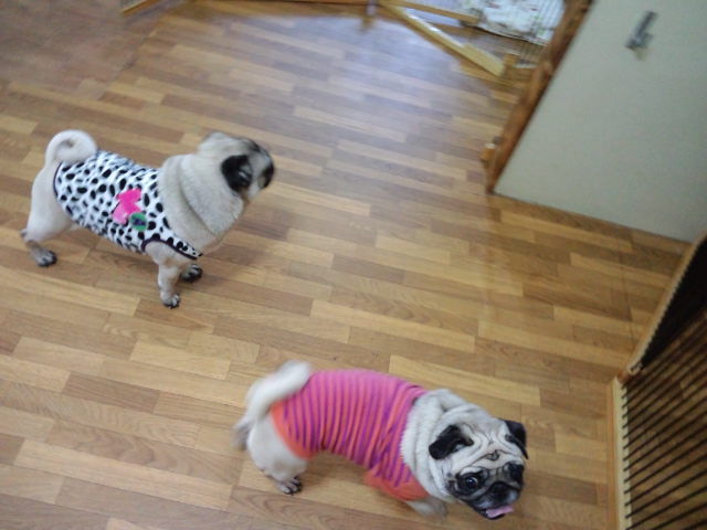 パグのこまめちゃんとあずきちゃん、しっかり完食しました。