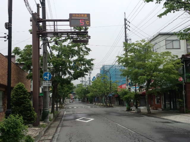 今朝の軽井沢の気温は5℃。天気は小雨が上がって曇りです。