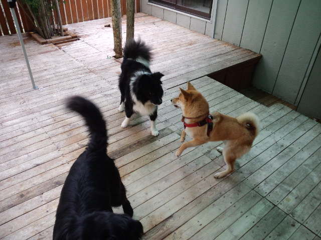 仲良しのハチ君がすぐに遊びに誘います。そのままプロレスごっこに突入です。