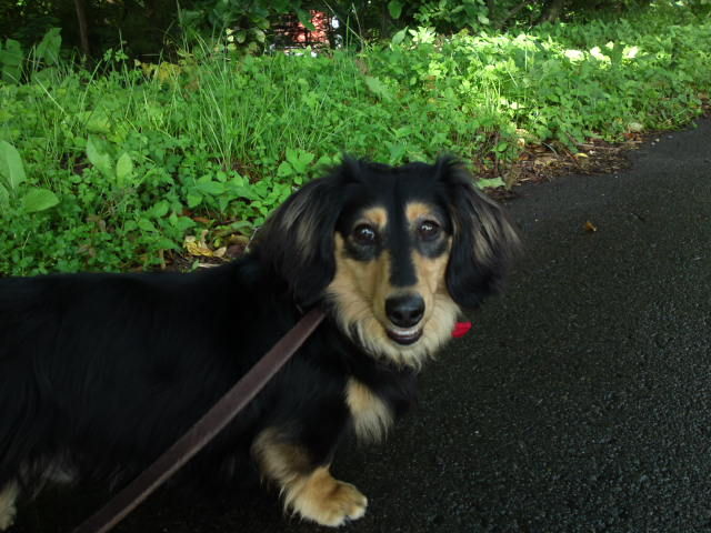 ダックスラブ君のオプション散歩をスタッフBがしてきました。 今朝は朝から暑い軽井沢、ラブ君は元気に歩いてます。