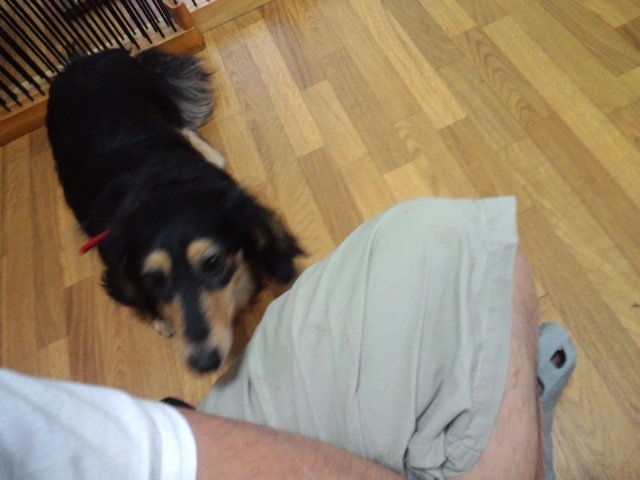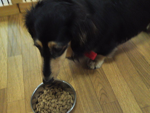 ダックスラブ君、ジャーキーだけ選んで食べてます。