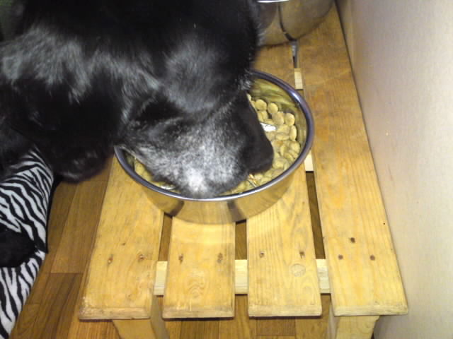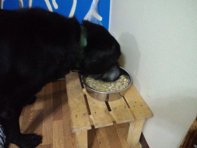 生涯預かりラブラドールのブラッキー爺さん、しっかり完食しました。ご飯の量も以前と同じになりました。一食600cc、1日に1・2リットル ものフードを食べてます。おかげで立っていられる時間も長くなってきてます。