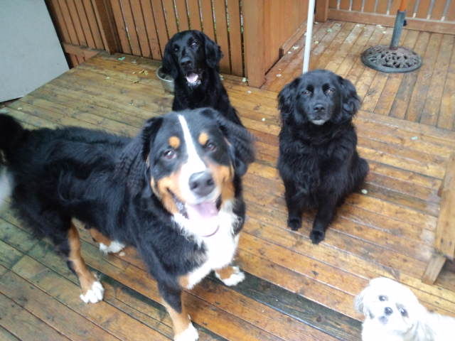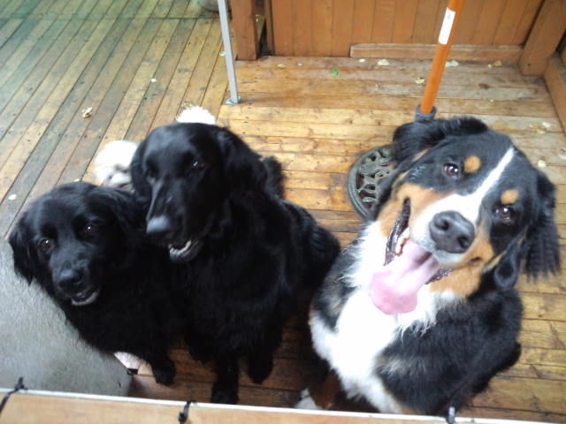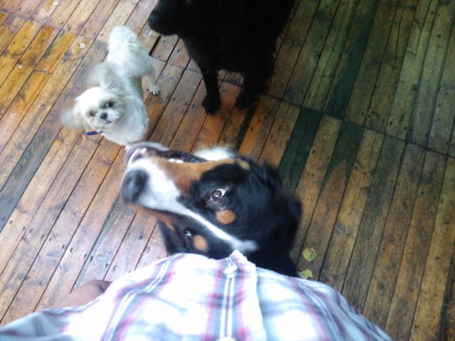 大型犬エリアではバーニーズのラブ君が店長に甘えてきます。お尻をべったりと店長に押し付けて、撫でろの催促です。