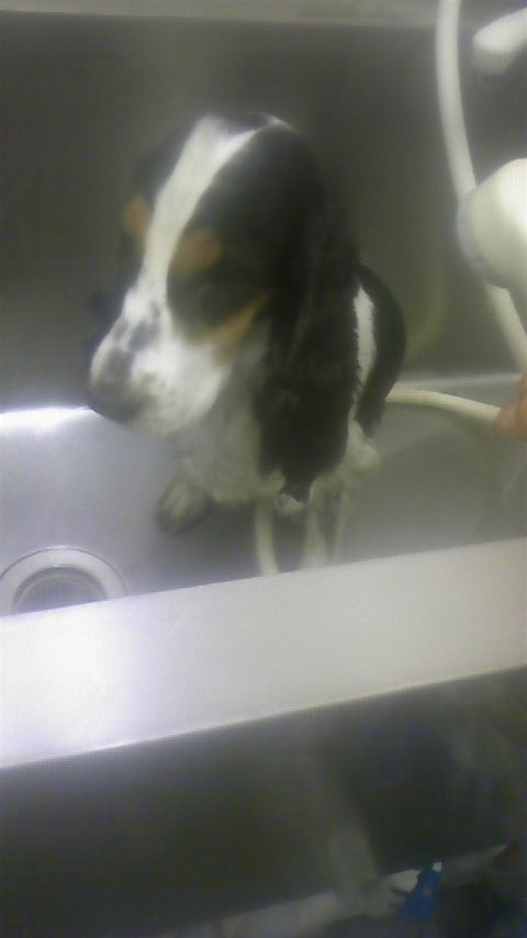 イングリッシュ・コッカーのライラちゃんはシャンプータイムです。 大人しく洗わせてくれたそうです。