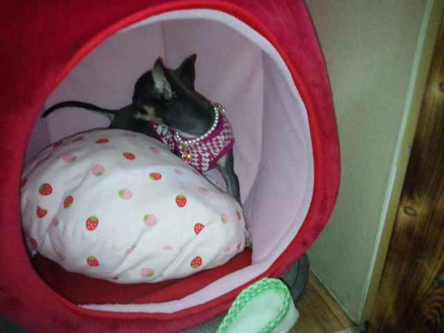 怖がり屋さんのティアラちゃん、すぐにハウスに閉じこもってしまいました。