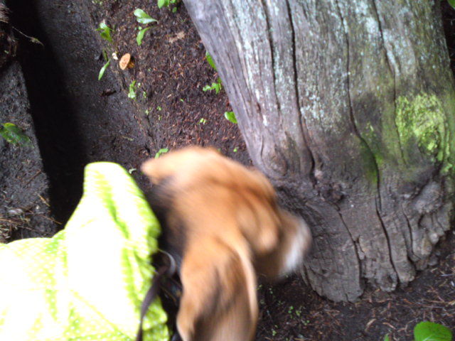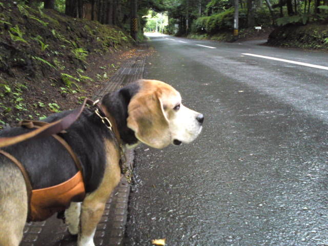 今朝の軽井沢はしっとり雨が降っていて雨に濡れなければお散歩に最適なのですが。そこでタラちゃん、泥はねよけのコートを着てお散歩に行きました。