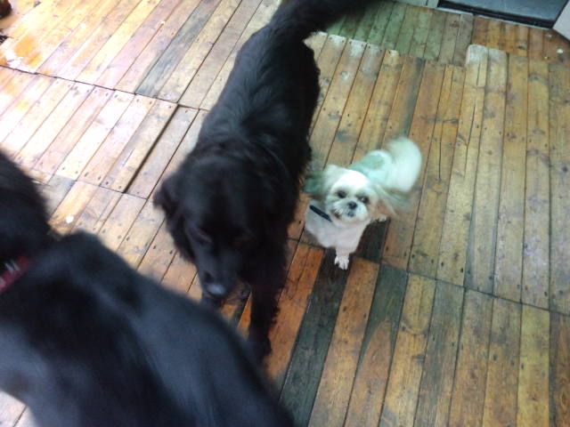 シーズーラッキー君は大治郎にべったりです。飛びかかって遊んでます。