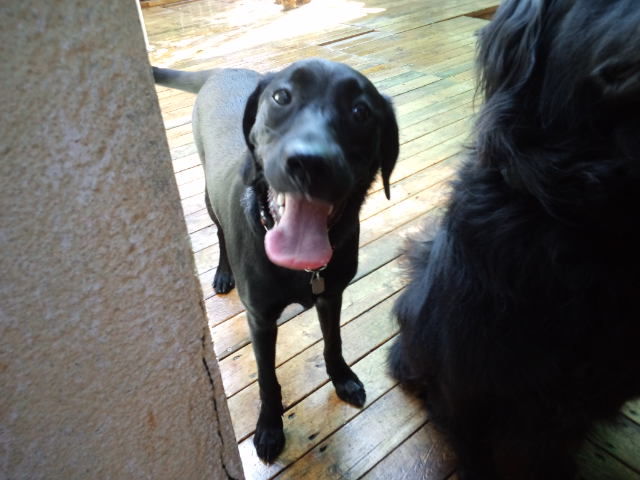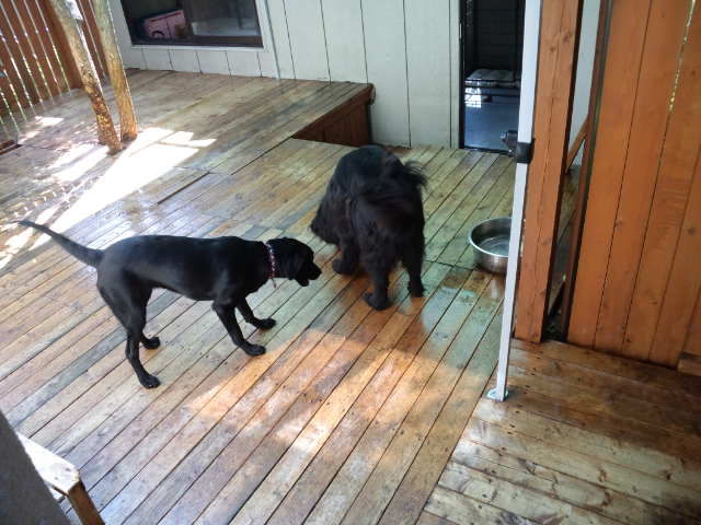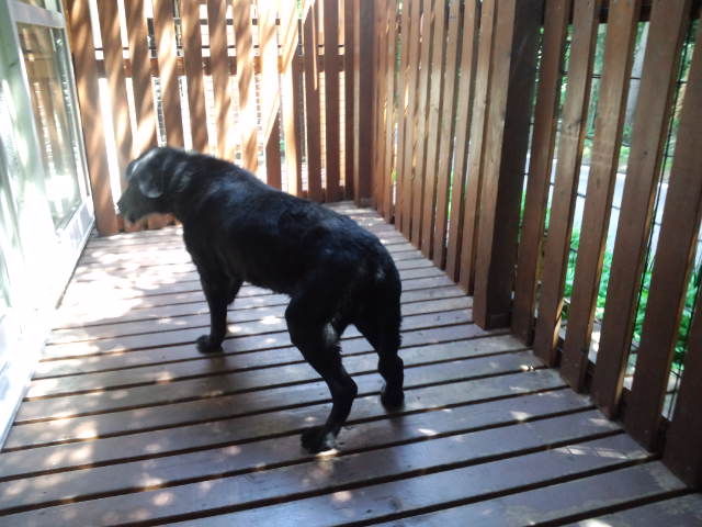 生涯預かりラブラドールのブラッキー爺さん、デッキで歩行訓練です。かなり長時間歩けるまでに回復しました。
