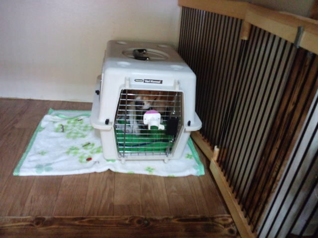 店長やスタッフにご挨拶してくれたソンちゃん。トイレや水分補給の後はハウスで大人しくしてます。