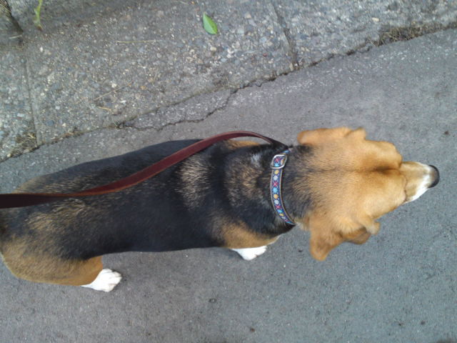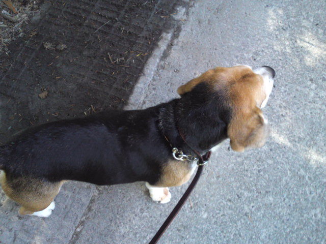 話が前後しましたが、ビーグル君のお散歩代行です。タラちゃんは今回も元気良く軽い足取りで、匂いチェックとマーキングに専念しながらの散歩となりました。