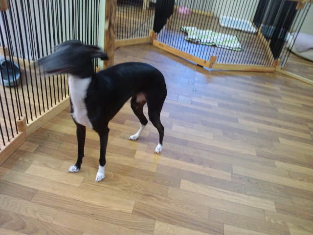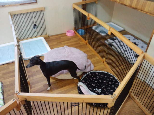 イタグレのジジちゃんがチェックインしました。 とても甘えん坊なジジちゃん、すぐに店長に甘えて来ます。 サークルの中でも騒がず良い子にしてます。