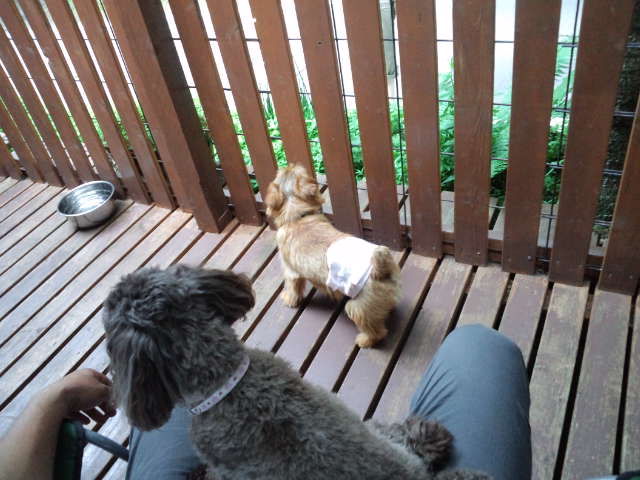 チワワのマロン君、やっと飼い主さんが居なくなったのに気が付いたみたいです。外を眺めてます。