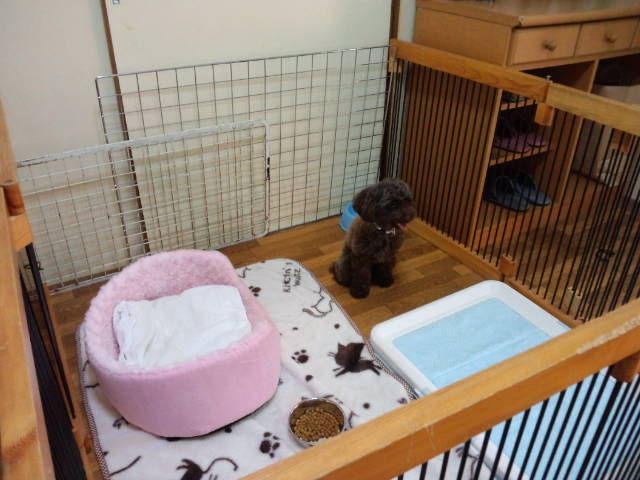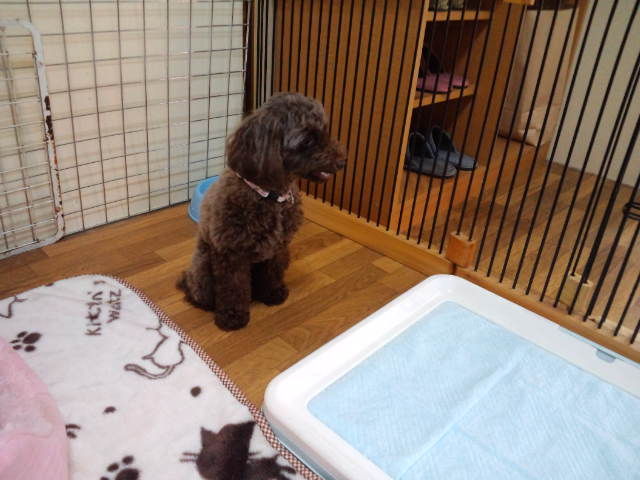 トイ・プードルのモコちゃんがチェックインしました。 ご飯は口を付けません。