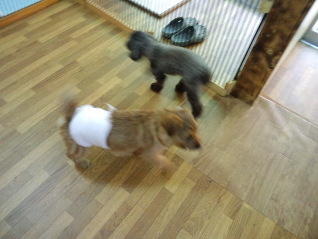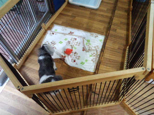 少し寂しがってますが、サークルから出したら走り回ってます。