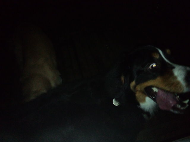 今は暗いデッキで、ゴールデンのジョジョ君とバタバタと遊んでます。