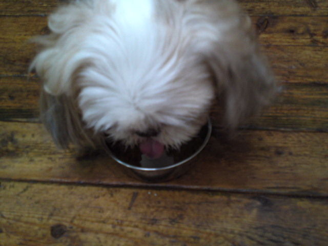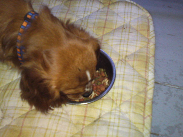 キャバリア大吉君、少し口を付けただけです。オヤツは喜んで食べてます。