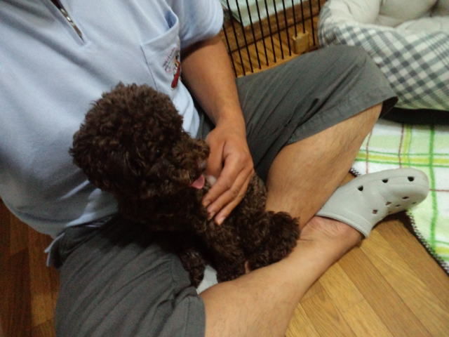 ご飯は寂しがって忙しいらしく口を付けません。 寂しいからか、店長にすぐに甘えてくれてます。