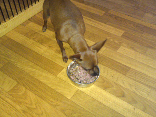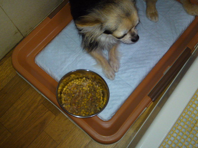 ミニピンのチェリーちゃん、少し口を付けただけです。そのまま置いておきます。