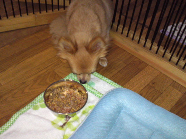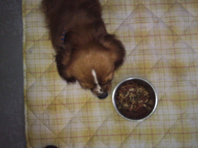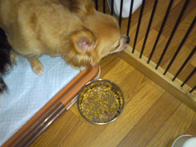 チワワちゃんズのまろん君ともかちゃん、晩御飯は少し無くなってました。朝は口を付けません。