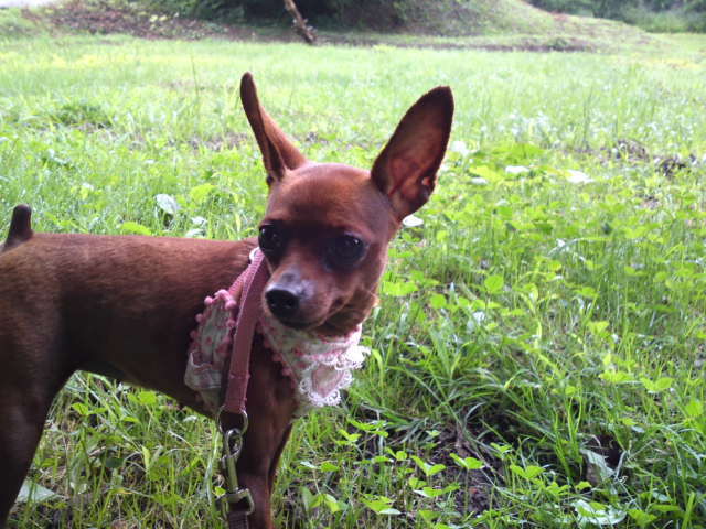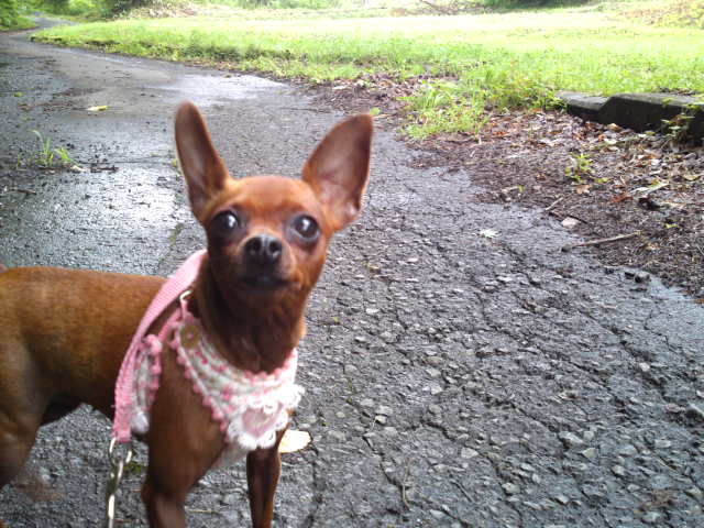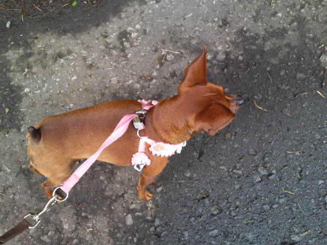 今日のお散歩は少しづつ慣れてきたので最初よりも足取り軽く楽しそうに歩いていました。 ウンチは下痢気味です。