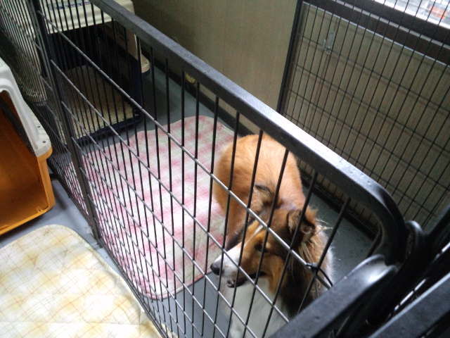 シェルティーのルナちゃんがチェックインしました。まだ緊張気味なルナちゃん、他のワンコからは逃げてしまいます。