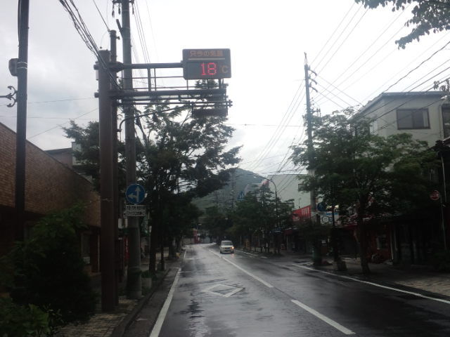 今朝の軽井沢の気温は18℃、天気は雨が降ったり止んだりです。