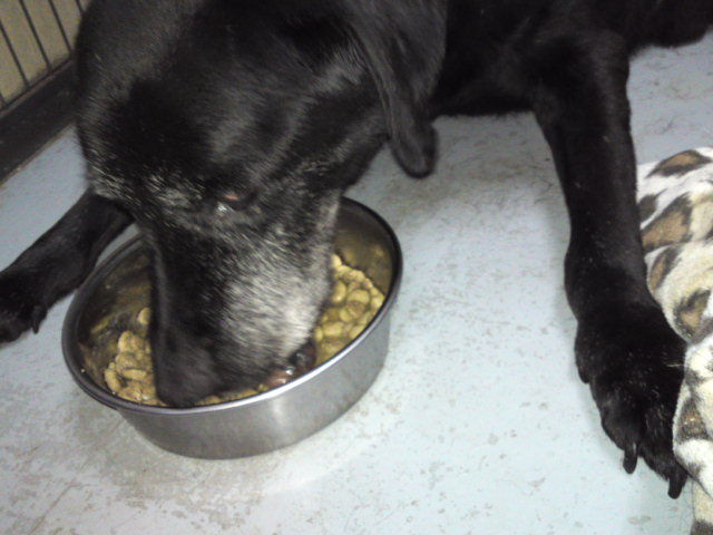 生涯預かりラブラドールのブラッキー爺さん、300cc完食しました。食欲はあるみたいですが、食べるのにも体力を使う様子です。