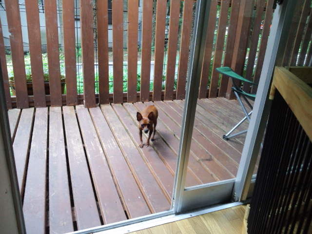 ミニピンのチェリーちゃんはデッキで走り回ってます。