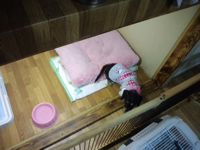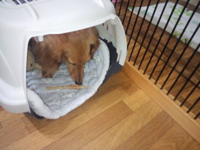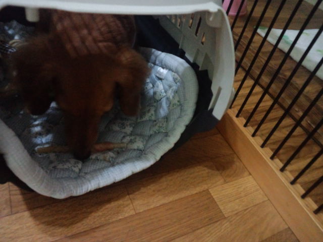 寂しくてイジケてるのかと思ったり、中で骨ガムを食べてました。