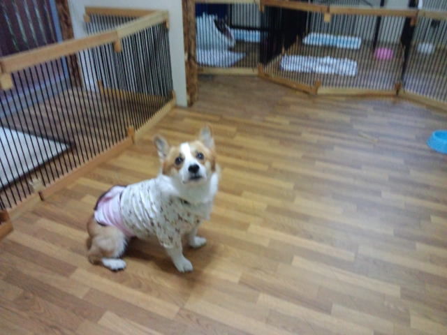 他のワンコが?とのりんちゃん、とりあえずサークルに居て貰いますね。
