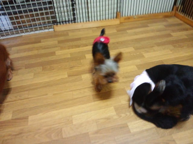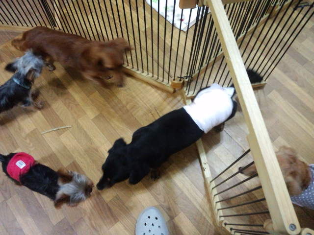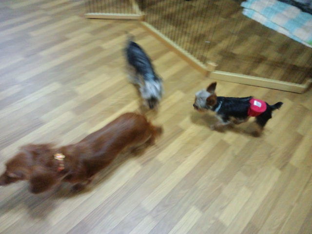 ヨーキーちゃんズとダックスフロイエン君は走り回ってます。
