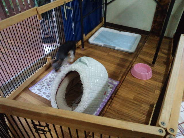 少し緊張気味かな? サークルの中に居て貰いますね。