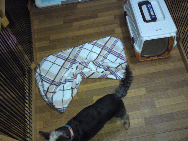 予定よりみんな早くチェックアウトして、店内に独りぼっちになったダックスケイちゃん。ハウスに閉じこもってます。