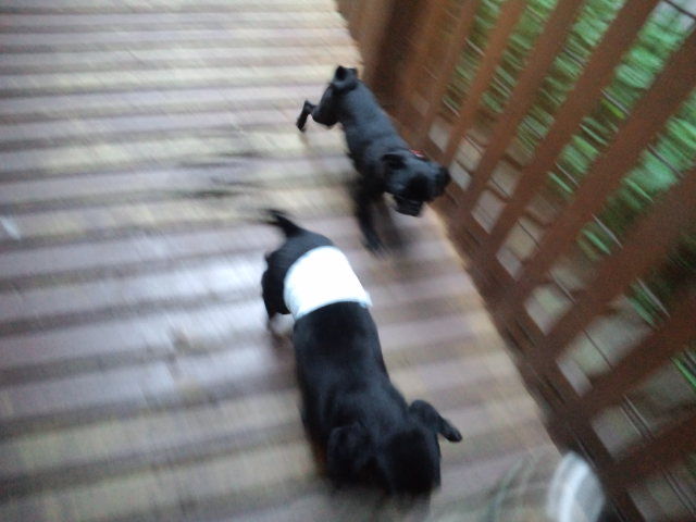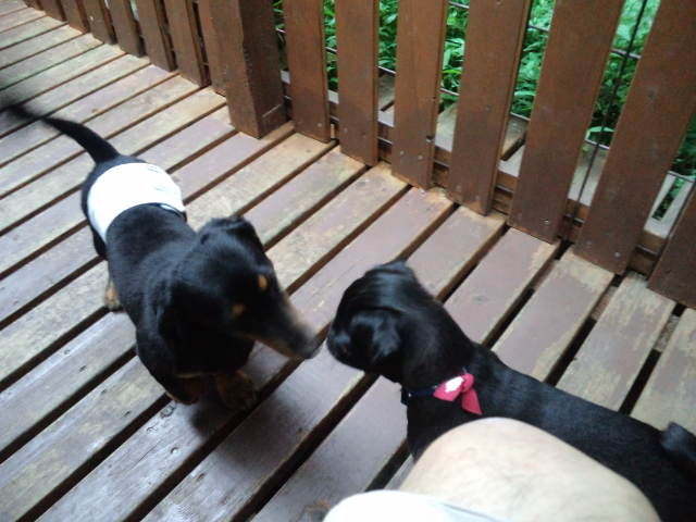 去年も来てくれたダックスのフロイエン君、今年も来てくれました。相変わらずフレンドリーの遊び好き、バグ小次郎君と遊んでます。