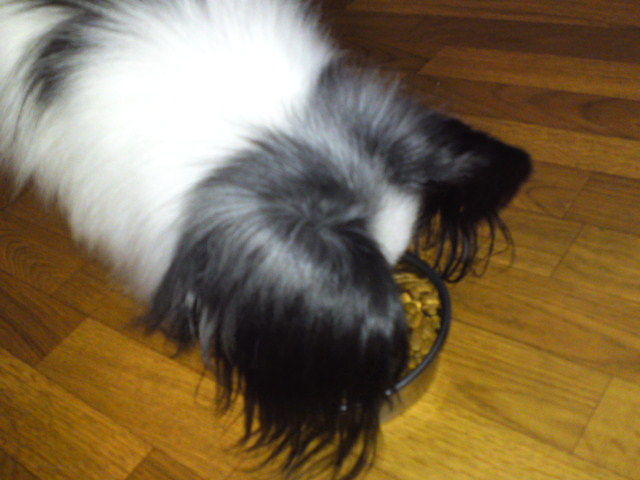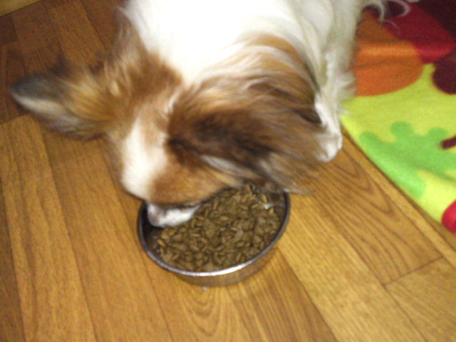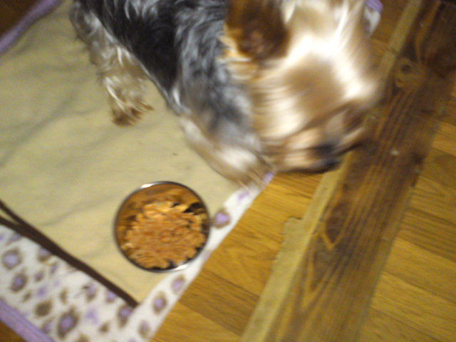 ヨーキーでこちゃん、口を付けません。 ダックスフロイエン君、しっかり完食しました。