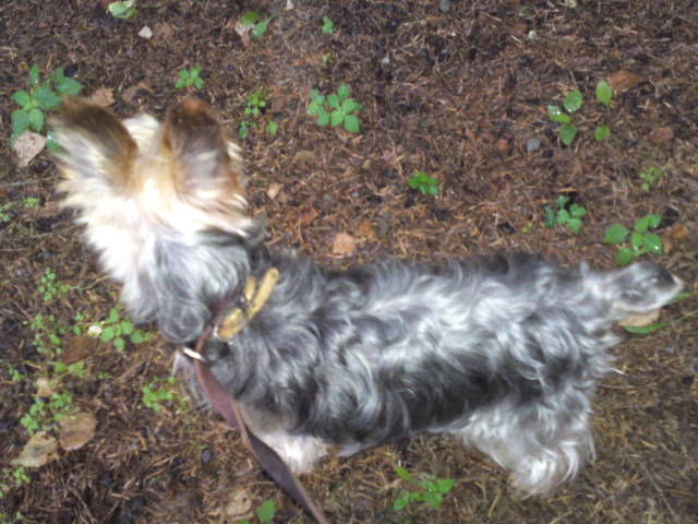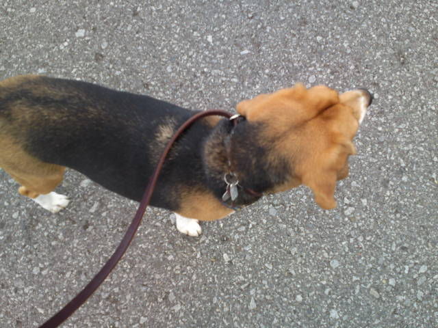 今朝のお散歩は、少し雨が降っていましたがオシッコをしたり匂いを嗅いだり楽しそうに歩いていました。
