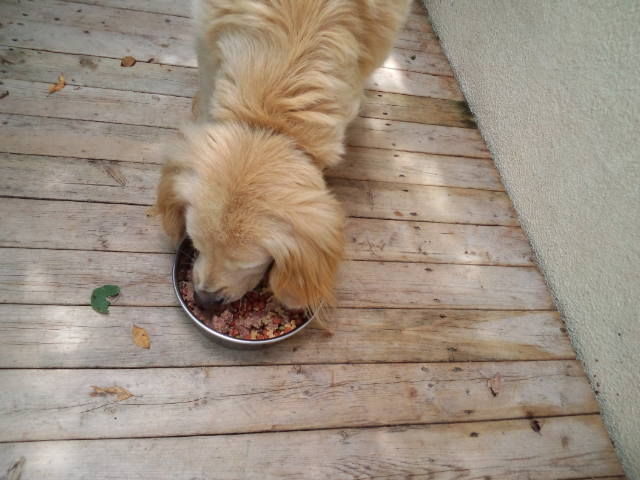 大型犬エリアでは、ゴールデンのサワちゃんがご飯タイムです。