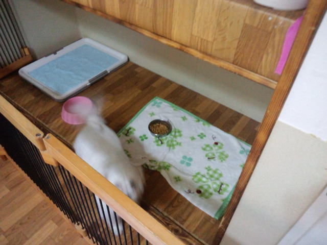 ミックスメイちゃん、サークルの中が落ちつくみたいです。