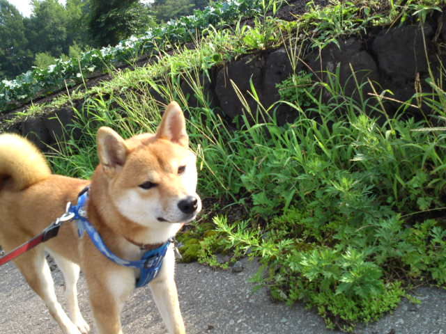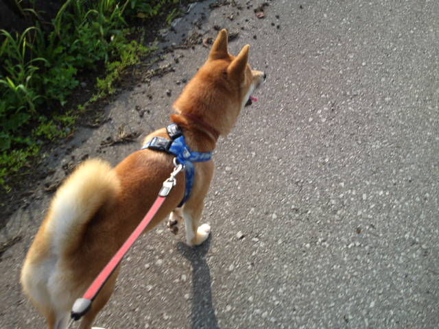 今朝はいつもと同じ時間で既に陽が差しています。今日も暑い1日になりそうです。ハチ君数回すれ違ったことのあるワンコに心を開いたのですが、相手のワンコはもう少し時間が必要みたいです。ハチ君ナイストライ。
