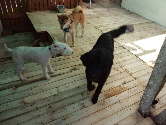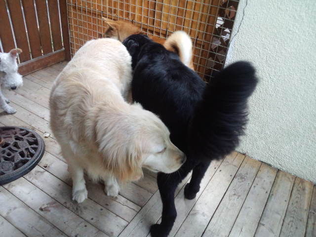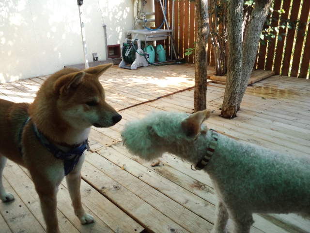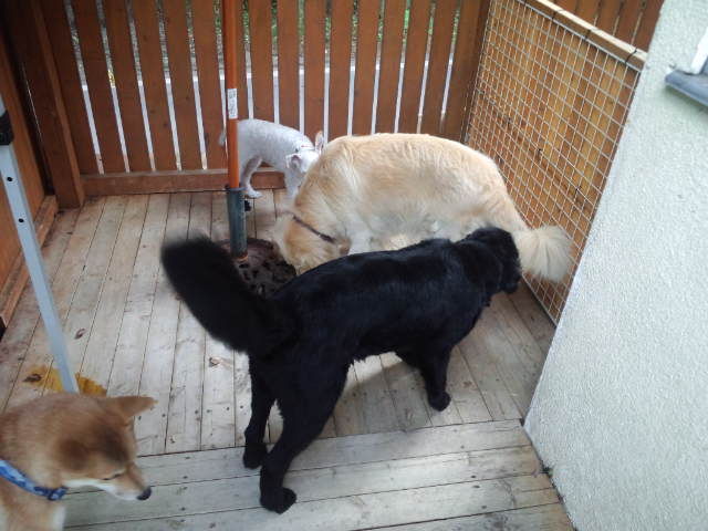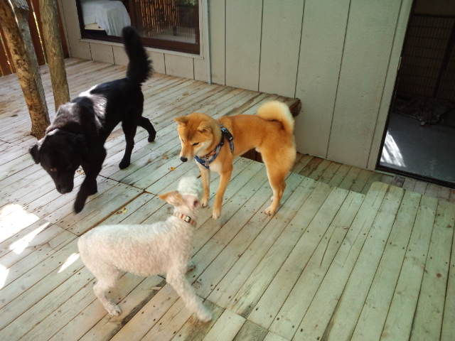 ワイヤーろく君を大型犬エリアに移してみました。 柴ハチ君や大治郎とちゃんとご挨拶してます。