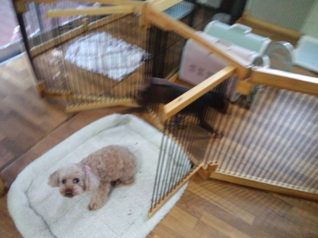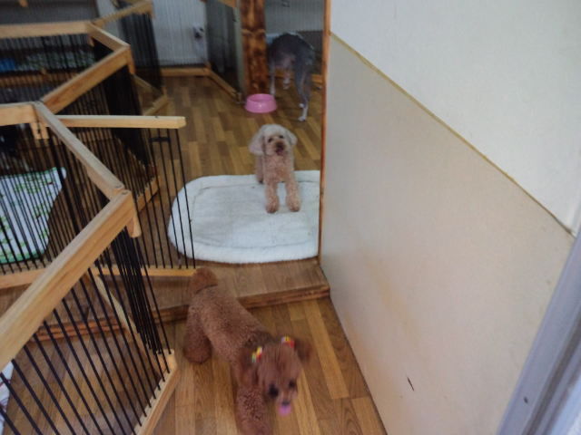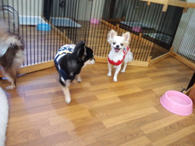 チワワのりんちゃんとけん君、すっかり慣れてサークルから出てきました。