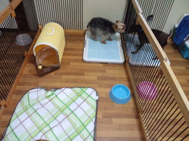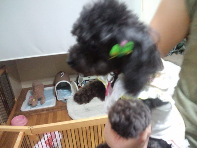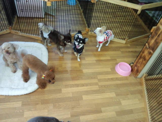 すぐにみんなと仲良くなって、サークルから出て遊んでます。なかなか写真が撮れないくらいです。