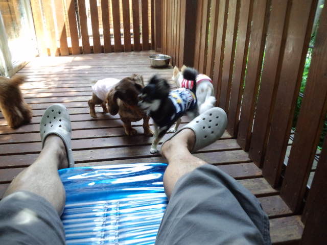 夕方になっても少し蒸し暑さを感じるが、陽が出ていない分過ごしやすくなりました。ハチ君は今日も元気よくお尻振って歩いていました。