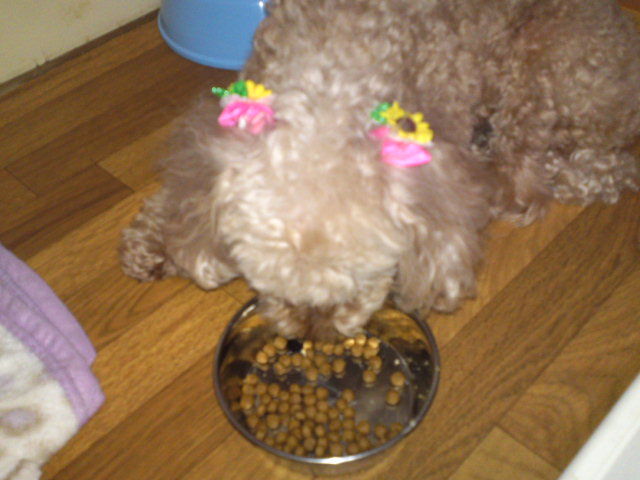 トイプーコロンちゃんとモモちゃん、少し口を付けただけです。