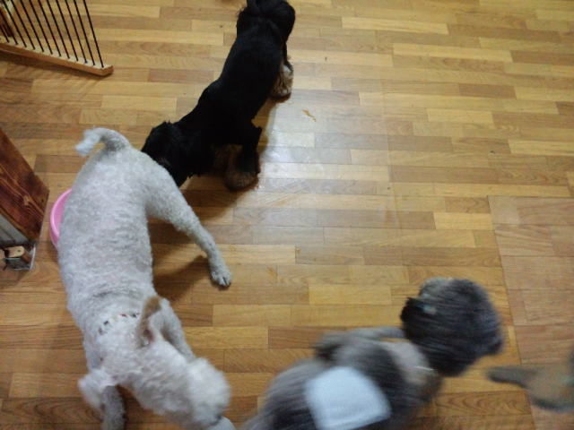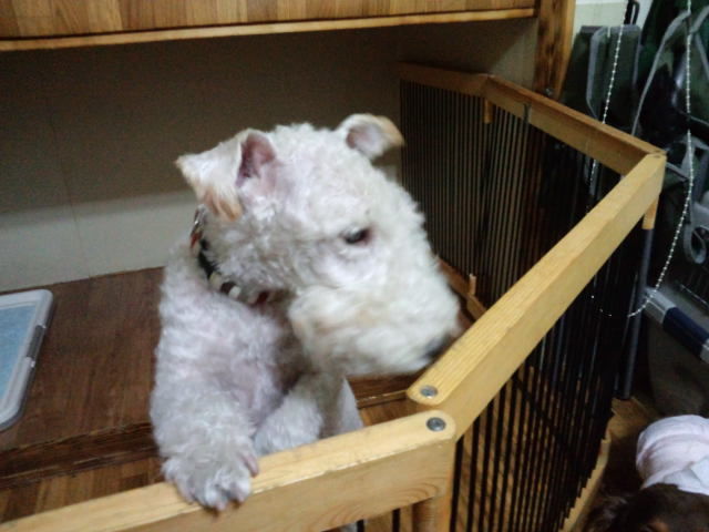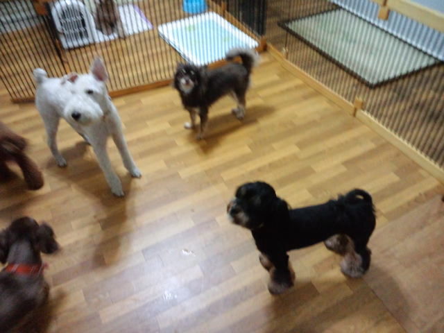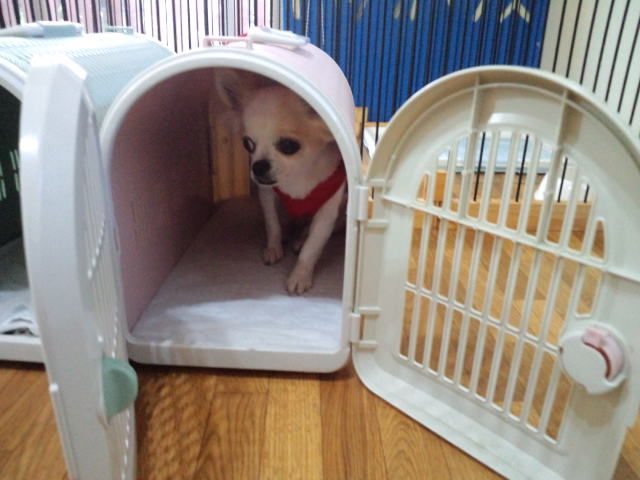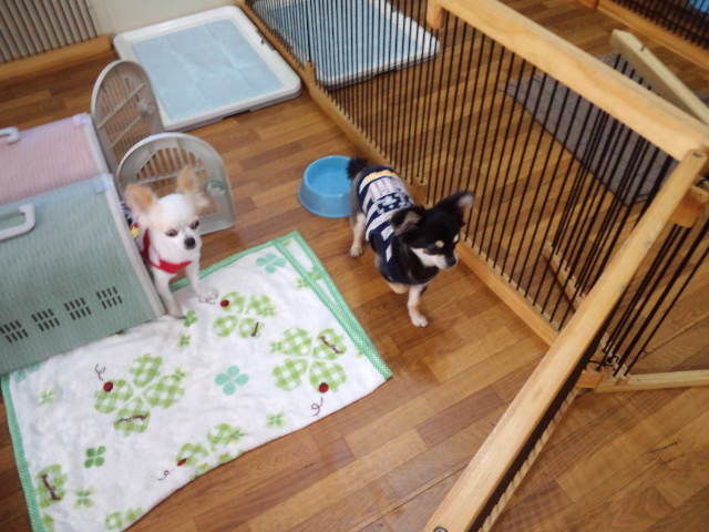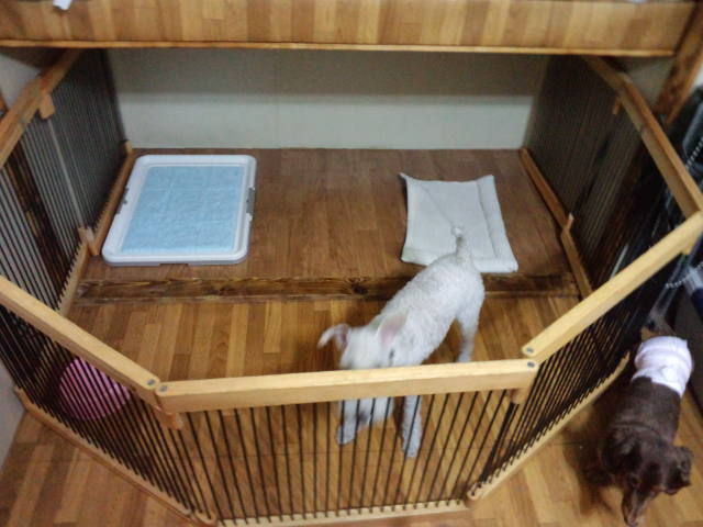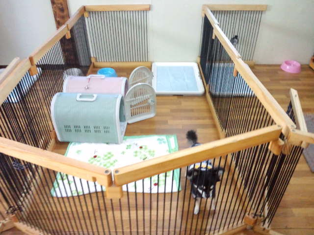 今夜はこのままサークルに居てもらい、明日は大型犬エリアで思いっきり走り回って貰います。
